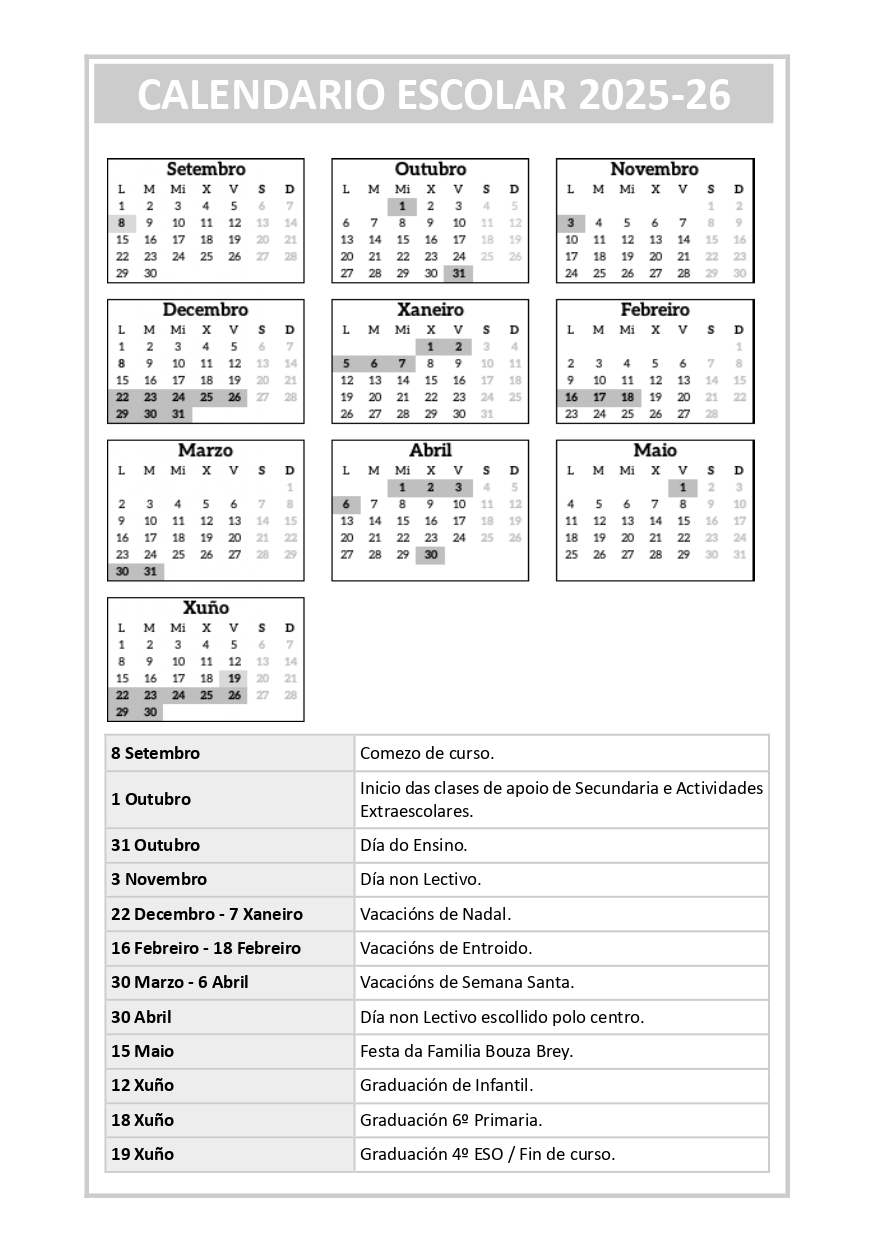 Visita o noso calendario escolar, onde poderás atopar as datas sinaladas do noso colexio